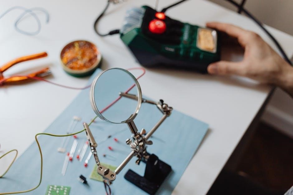 A comprehensive guide in PDF format is an invaluable resource for engineers, technicians, and students working with electrical and electronic systems. These guides provide a detailed collection of standardized symbols, ensuring clarity and consistency in circuit diagrams. By downloading a PDF guide, users gain access to a wide range of symbols, from basic components like resistors and capacitors to complex elements such as transformers and relays. This centralized resource simplifies the design process, enabling professionals to quickly reference and incorporate symbols into their projects. The PDF format allows for easy printing on A4 sheets, making it a practical tool for both office and fieldwork. Many guides also include a periodic table of symbols, organizing components into logical categories for easier navigation. This standardized approach ensures that electrical and electronic systems are represented uniformly, reducing misunderstandings and errors. Whether for educational purposes or professional use, a comprehensive PDF guide is an essential tool for anyone involved in electrical engineering and design.